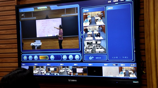 在這堂數學課上,不僅有本教室的同學參與,同時還和另外兩間學生教室、一間教研教室進行了一拖三的專遞課堂,學生們同上一堂課,現場師生互動反響十分熱烈。