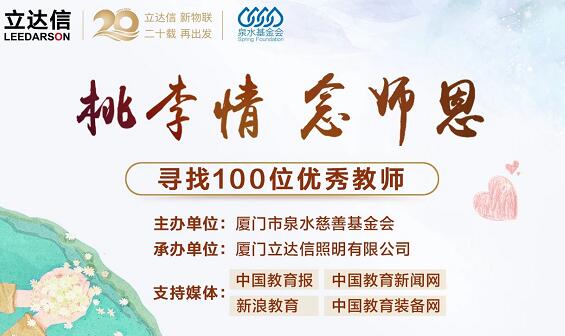 第36個教師節來臨之際,恰逢立達信集團創立20周年,我們聯合公益組織廈門市泉水慈善基金會,一起致敬教師。尋找100位優秀教師代表,特別是在邊遠鄉村任教超過20年的教師,表達我們誠摯的敬意和節日祝福。