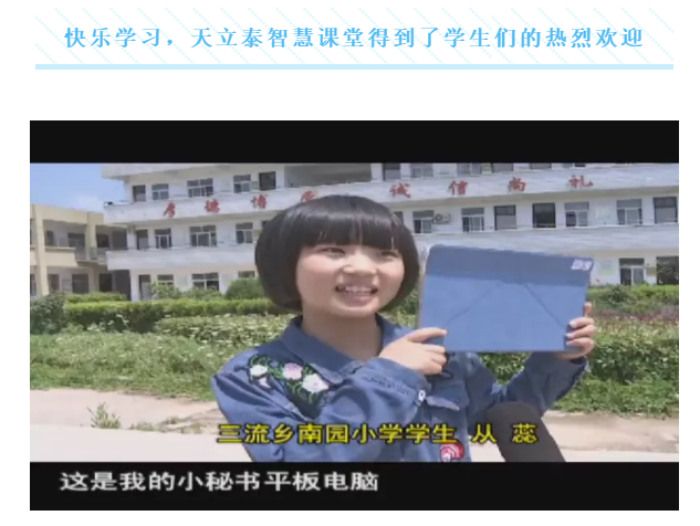 三流鄉六一小學教師蔣海楠介紹到,智慧課堂軟件使用十分方便,有利于學生的學習和老師的教學。學生們人手一臺的平板電腦,大大提高了學生們對學習的積極性,我們老師也可以利用這樣的教學設備,隨時隨地查看學生的學習情況、備課以及相關的教研工作,讓課堂真正實現了無紙化教學,減輕了我們很多的工作量。