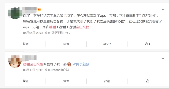 網友稱贊金山文檔自動保存及修復功能