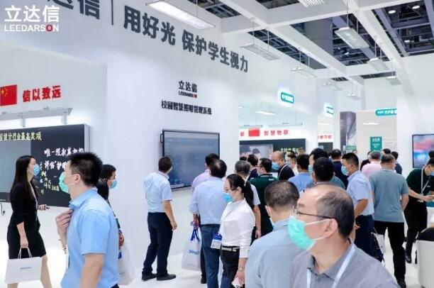 作為展會冠名商,立達信展位圍攏了大批觀眾。“百聞不如一見!”從河北專程趕來觀展的王校長,為立達信的健康光環境解決方案豎起了大拇指。