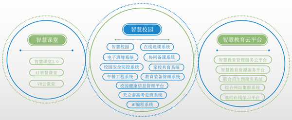 天立泰智慧校園整體方案是綜合運(yùn)用云計(jì)算、移動互聯(lián)、物聯(lián)網(wǎng)、大數(shù)據(jù)、人工智能等新興信息技術(shù),與學(xué)校的主要業(yè)務(wù)和教育教學(xué)關(guān)鍵環(huán)節(jié)深度融合,以面向師生個性化服務(wù)為理念,促進(jìn)教學(xué)、學(xué)習(xí)、管理、生活和文化的流程梳理與系統(tǒng)重構(gòu),提高教育教學(xué)質(zhì)量和教育管理決策水平,完善區(qū)域優(yōu)質(zhì)師資不均衡,推動教育均衡發(fā)展。