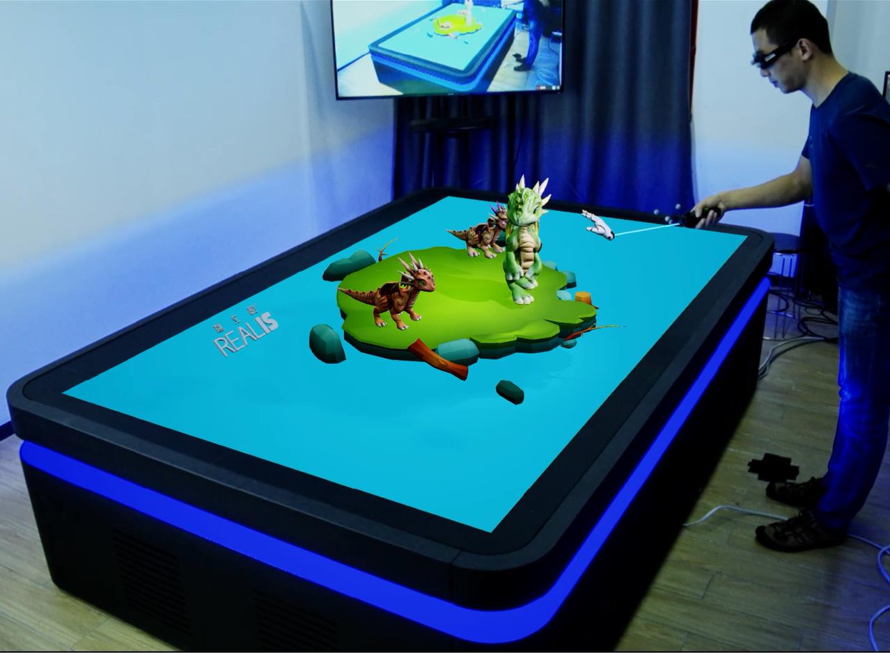 從目前陸續公布的視頻來看,RTS-3DHOLO的顯示效果十分驚艷!透過3D眼鏡,我們可以看到虛擬場景內容“懸浮直立”在平面上的獨特視效!并且可以360度自由視角觀看,瑞立視將其稱為“視點追蹤全息3D顯示技術”。各種場景內容通過全息3D顯示躍然屏上,栩栩如生,仿佛就在眼前的臺面上靈活跳動!當你伸手想去觸碰,卻又觸不可及……