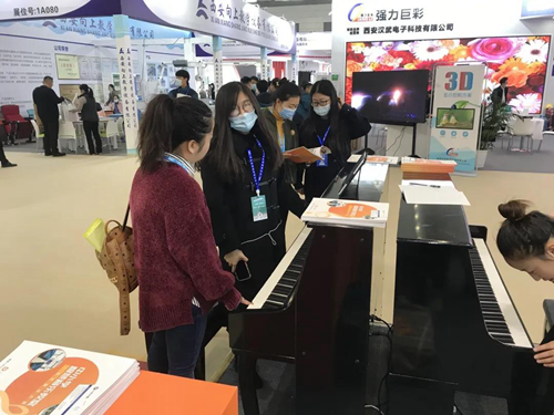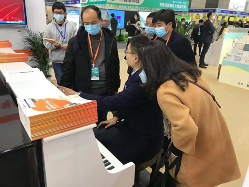 現場人氣爆棚,來自陜西省教育廳教育技術裝備管理中心的趙夢處長及相關負責人、教育裝備行業人士蒞臨參觀,詳細了解了小知大數各系列的產品,并充分肯定了小知大數在音樂方面的專業。