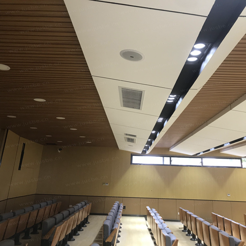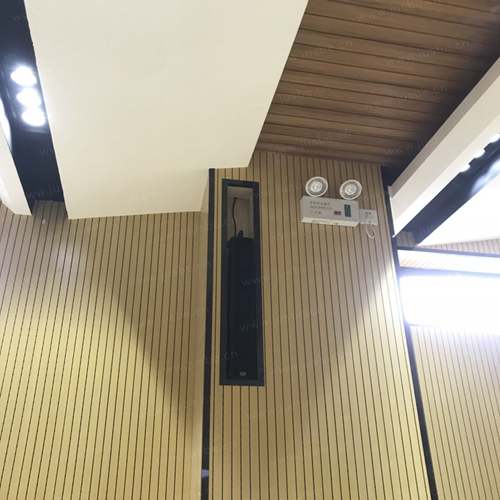 為確保報告廳內擁有足夠的聲壓級和清晰均勻無死角的聲音覆蓋,廳內輔助音箱的配置安裝,選擇的高品質音箱和陣列音箱,分別裝掛在觀眾前區和后區,另外,觀眾區補聲音箱則選擇的同軸式高保真定向型天花喇叭,既能提供富有層次的聽音效果又能達到與裝修風格和諧美觀的效果。