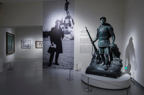 此外,華茂藝術教育博物館還以劉開渠、賀綠汀、羅工柳為藝術教育史個案研究,不僅陳列其藝術作品,還展出了大師手稿、照片、鋼琴等實物以及生前影像資料等。如劉開渠創作的人民英雄紀念碑浮雕《勝利渡江》原稿、賀綠汀生前使用過的斯特勞斯鋼琴、羅工柳為《地道戰》創作的小稿速寫等,引領觀眾追溯雕塑巨匠、音樂大師、畫壇泰斗的奮斗足跡,借以回望波瀾壯闊的中國近現代美育史縮影。