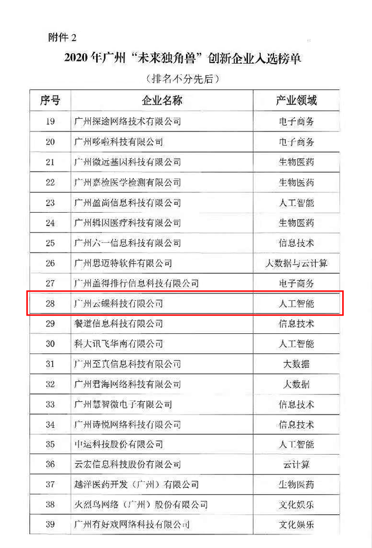 正式官宣!云蝶科技獲2020年廣州“未來獨角獸”創(chuàng)新企業(yè)稱號