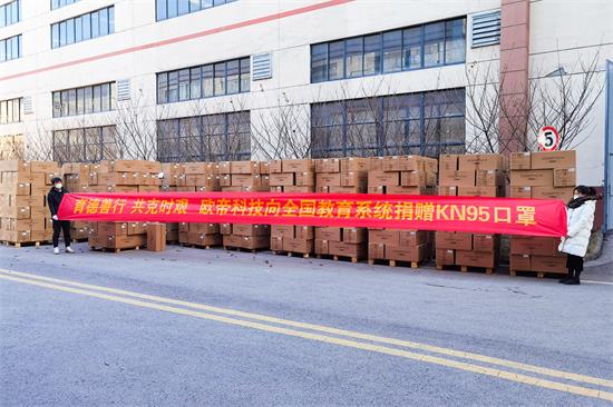 【1月9日,河北】歐帝科技捐贈的首批約35萬只KN95口罩送達河北教育系統。由于疫情,很多快遞發往河北受到影響,物流困難,歐帝科技不計成本,包車運輸口罩,口罩到達當地后,安排分公司員工送達上門,確保河北教育系統第一時間收到口罩。