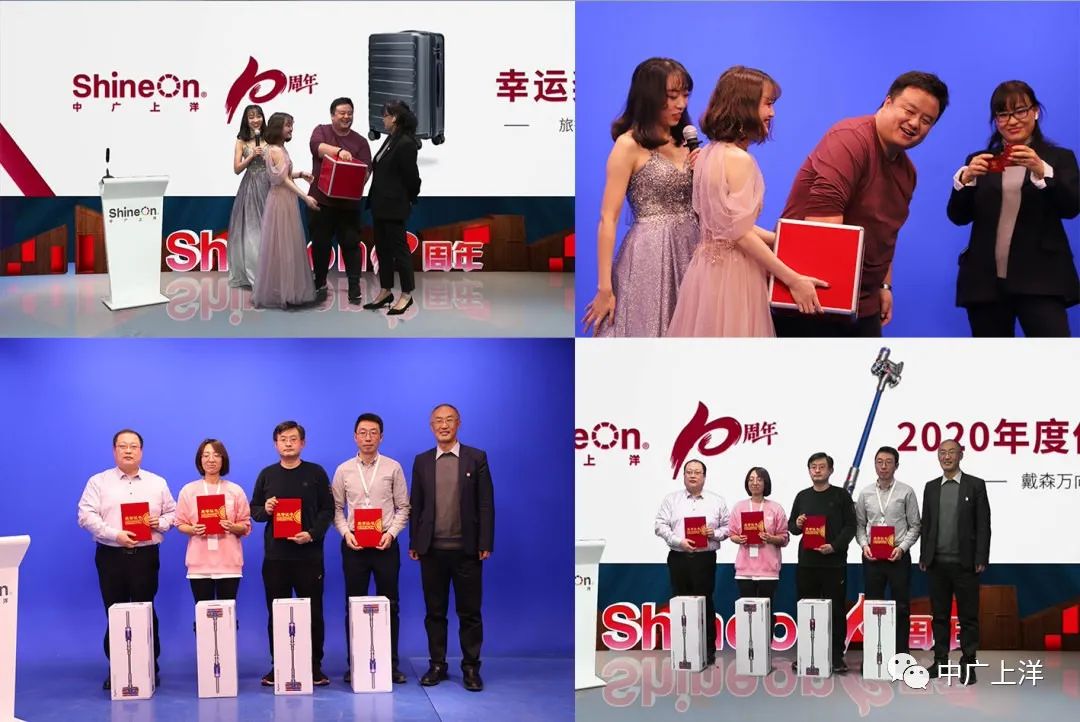 上洋為陪伴公司五年、十年的員工頒發(fā)精美紀念品,表彰優(yōu)秀團隊和個人并現(xiàn)場進行多輪幸運抽獎,在上洋虛擬演播室中進行實時直播。