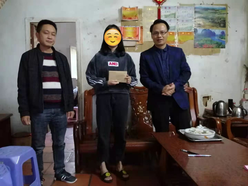 2020年12月27日,漁村中學校長崔鎮坤以及校領導一行五人,代表云蝶科技前往劉同學、王同學兩位貧困學生的家中,將云蝶科技向兩位學生捐贈的全學年學費送到到他們的手中。