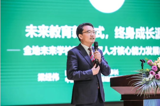 南京金地未來學(xué)校理事長、中國科學(xué)院大學(xué)基礎(chǔ)教育研究院副院長梁經(jīng)偉,分享了南京金地未來學(xué)校在“未來國際領(lǐng)軍人才核心能力培養(yǎng)教育體系”的構(gòu)建上做出的創(chuàng)新改革。