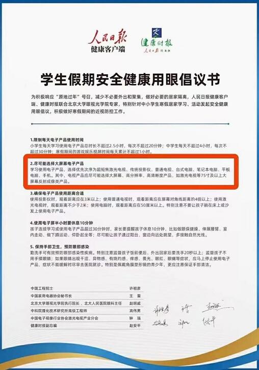 人民日報(bào)發(fā)布安全健康用眼倡議書 光峰科技激光電視更護(hù)眼