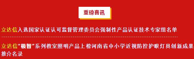重磅!立達信入選國家認監委專家組名單,上榜河南省中小學近視防控護眼燈具創新成果推介名錄!
