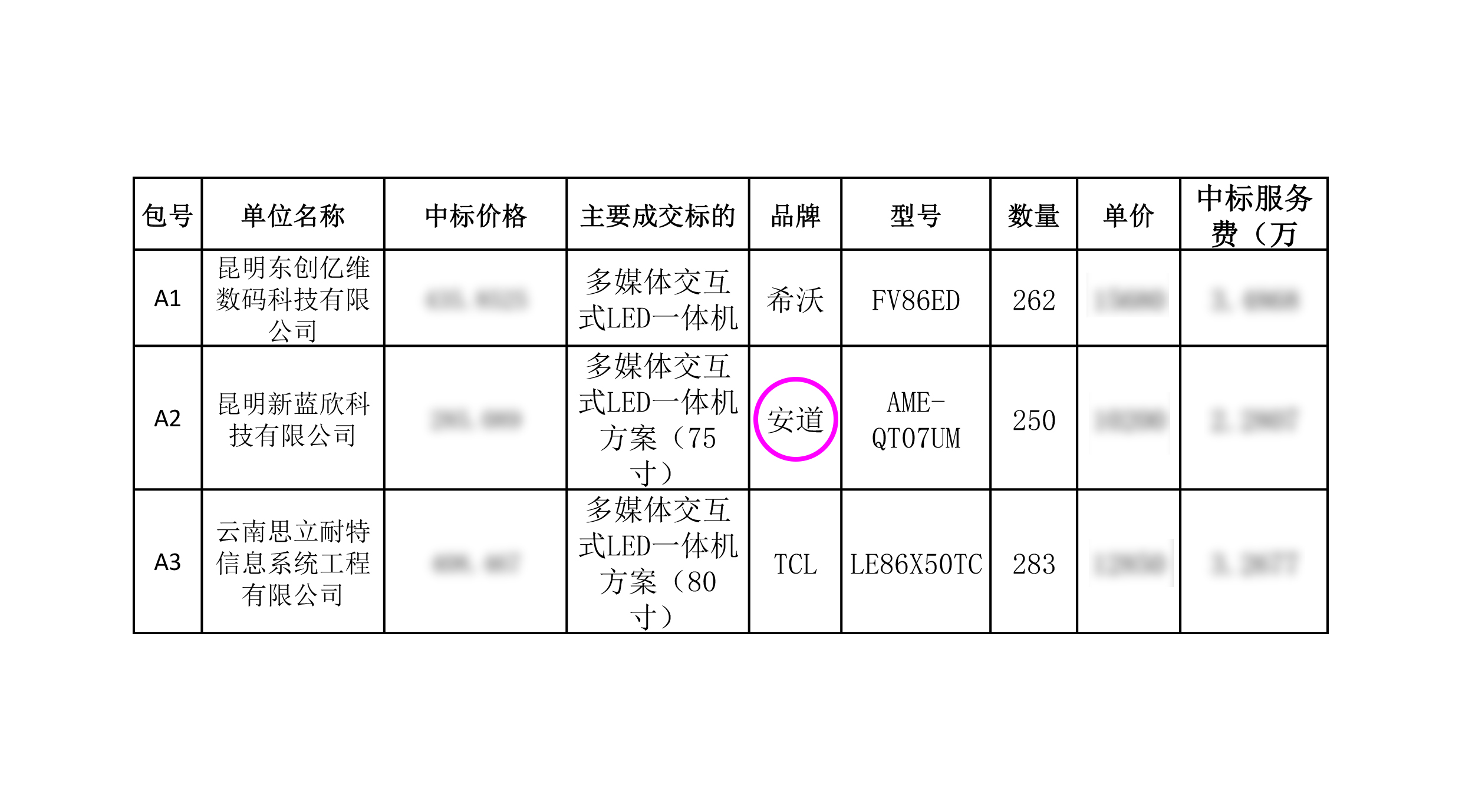 例如這次云南省標,經過與眾多優秀的智慧教育設備品牌激烈的博弈和云南省電化教育館層層篩選,以及評審人員在各種環境中的反復試用,安道教育多媒體交互式LED一體機在眾多的競爭對手中脫穎而出,成為省內專家認可中標的標桿項目。