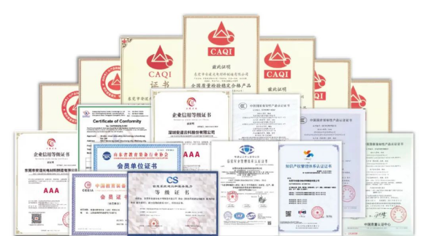 截止2021年3月,公司已獲得“采用防眩光AG玻璃的電子黑板”“安道智慧課堂軟件V1.0”“物聯集控軟件V1.0”“安道E課堂教室端軟件V1.0”等100+項國家專利和軟件著作權;獲得“中國環境標志產品認證證書”“中國節能產品認證證書”等150+項資質認證;通過了ISO20000/27001/14064,IATF16949、QC080000、CS1、CMMI3、ITSS、防藍光、SRRC、中國環境標志、視覺健康等多項權威認證;物聯集控軟件、智慧校園綜合管理后臺軟件、安道助手軟件等軟件都已通過信息系統安全等級保護二級。