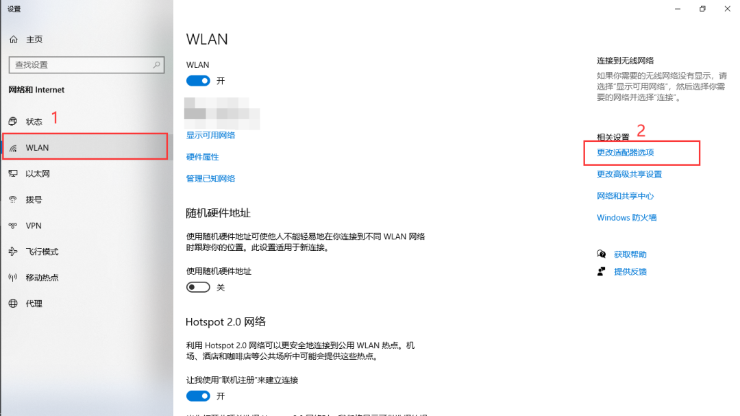 進入WLAN菜單,單擊“更改適配器選項”