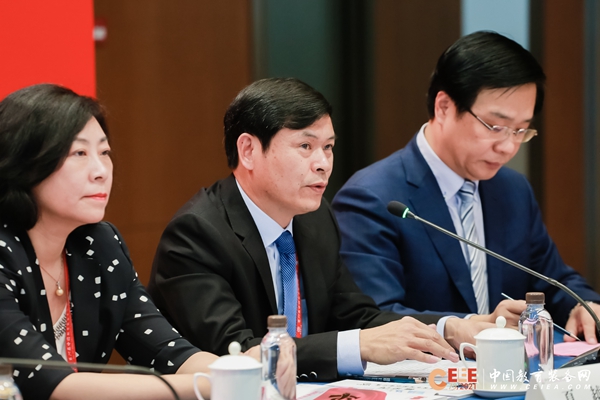 福建省教育廳黨組成員、副廳長陳明慶,中國教育報刊社副社長夏越,教育部基礎教育司教學與裝備信息化處處長張權,廈門市教育局副局長陳珍,中國教育裝備行業協會常務副會長李興植,中國教育裝備行業協會監事會副監事長劉宜,福建教育裝備與基建中心主任何光輝,四川省教育廳技術物資裝備管理指導中心主任王方文出席會議。中國教育裝備行業協會副會長兼秘書長夏國明主持會議。