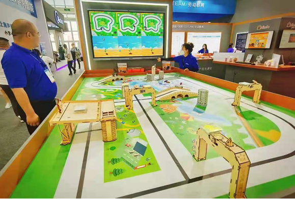 4月23日, 科創(chuàng)教育和人工智能教育領軍企業(yè)品牌的蘑菇云攜科創(chuàng)教學全場景解決方案:智慧交通、智慧校園、AI游樂場及科創(chuàng)教學產品亮相第79屆中國教育裝備展,在福建廈門國際會議展覽中心B1017展位通過產品互動、現場講解的形式向參觀者展示了全方位與智能化相結合的科創(chuàng)教育解決方案。