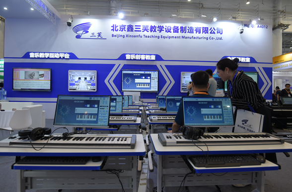 鑫三芙攜音樂創客教室、五線譜電教板、音樂教學互動平臺等產品亮相本屆展會。
