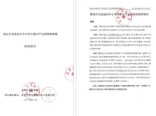 2015年,立達(dá)信首所健康光環(huán)境整校項(xiàng)目廈門五緣實(shí)驗(yàn)學(xué)校改造完成。2018年,由北京大學(xué)醫(yī)學(xué)部、北京大學(xué)兒童青少年衛(wèi)生研究所(國(guó)標(biāo)GB7793-2010《中小學(xué)校教室采光和照明衛(wèi)生標(biāo)準(zhǔn)》、國(guó)標(biāo)GB40070-2021《兒童青少年學(xué)習(xí)用品近視防控衛(wèi)生要求》主起草單位)出具的權(quán)威報(bào)告顯示:立達(dá)信健康光環(huán)境改造項(xiàng)目顯著提升了教室的照明環(huán)境,在一定程度上可預(yù)防中小學(xué)生視力下降和降低不良視力的新發(fā)率。