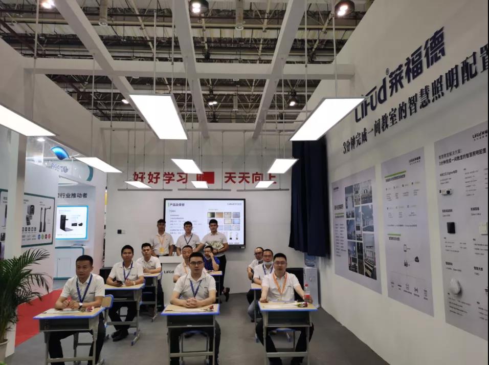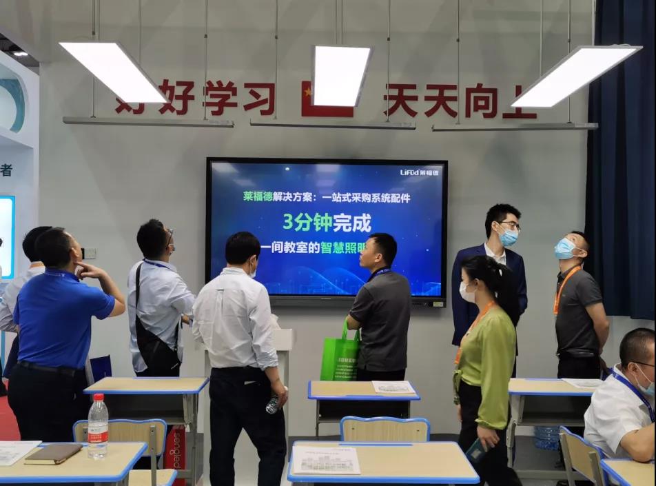 開展第二天,萊福德受中國教育裝備行業協會邀請,在廈門國際會議展覽中心B2館鷺江廳序廳進行“新產品、新技術、新成果”發布會,本次發布會總計19家教育裝備企業參與,其中照明細分領域僅有萊福德與立信達兩家受邀參加。