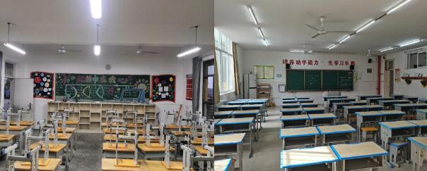 我們?nèi)K薪淌叶嫉臒艄舛歼M(jìn)行了改造,日光燈最大的一個問題就是有頻閃,長期下來學(xué)生眼睛覺得特別刺眼,改造之后燈光變得特別柔和。