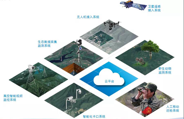 地面的建設主要是視頻監控和野保相機,包括早期建設的防火的探頭,也包括自然保護區建的人員管控、進山路口的動態監測;在園區野生動物、濕地鳥類等可能活動區域內布設高清攝像頭、紅外相機,監測野生動物物種分布和行為數據信息。