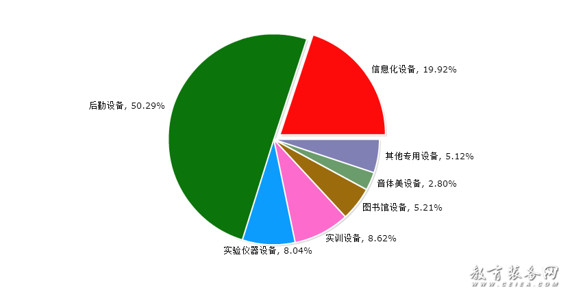 根據(jù)對教育裝備細分的歸納,教育裝備網(wǎng)將教育裝備具體劃分為七大類,即信息化設備(含智能平板、錄播系統(tǒng)、智慧黑板等),后勤設備(含校園基建、安防設備、食堂設備、課桌椅等),實驗儀器設備(含儀器儀表、實驗室平臺等),實訓設備(含實訓系統(tǒng)、實訓設施等),圖書館設備(含借還系統(tǒng)、微型圖書館等),音體美設備(含樂器、體育設施、美術用品等),其他專用設備(含創(chuàng)客教育、心理健康特教設備等)。