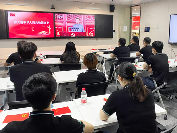 7月1日上午8時,慶祝中國共產黨建黨100周年大會在天安門廣場隆重舉行。中共中央總書記、國家主席、中央軍委主席習近平出席慶典并發表重要講話。云蝶科技公司組織黨員和職工集中觀看了大會盛況,感悟百年黨史、聆聽書記教誨、奮進新的征程,包括云蝶科技總裁田雪松、副總裁劉麗麗、黨支部書記羅崇鍵在內的20多位黨員、同事參加。