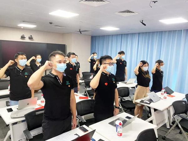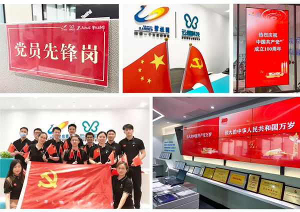 今年6月,云蝶公司黨支部發出《開展“黨建引領 凝心聚力 迎建黨百年”系列活動的通知》,并發出《云蝶科技獻禮建黨100周年倡議書》,大力營造迎黨慶、重黨建的濃厚氛圍,逐步把黨性教育推向深入。今天,云蝶黨支部還組織了紅歌唱響、“我與黨旗合個影”、黨員亮名牌等活動,同事們用熱情洋溢的笑容和深情寄語為建黨百年華誕獻上祝福。