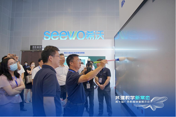 展會現(xiàn)場,廣西省南寧市人民政府副秘書長蒙文虎等領(lǐng)導(dǎo)蒞臨希沃展位,深度體驗(yàn)了全形態(tài)墻面一體化產(chǎn)品解決方案、交互智能平板高精度紅外系列、精品錄播教室和一體化LED顯示終端等產(chǎn)品方案。其中,希沃四邊紅外智慧黑板所搭載的一鍵開啟主屏和副屏記憶存儲功能,和在傳統(tǒng)板書習(xí)慣與全新智能交互結(jié)合上的完美體驗(yàn),受到現(xiàn)場領(lǐng)導(dǎo)的一致認(rèn)可。