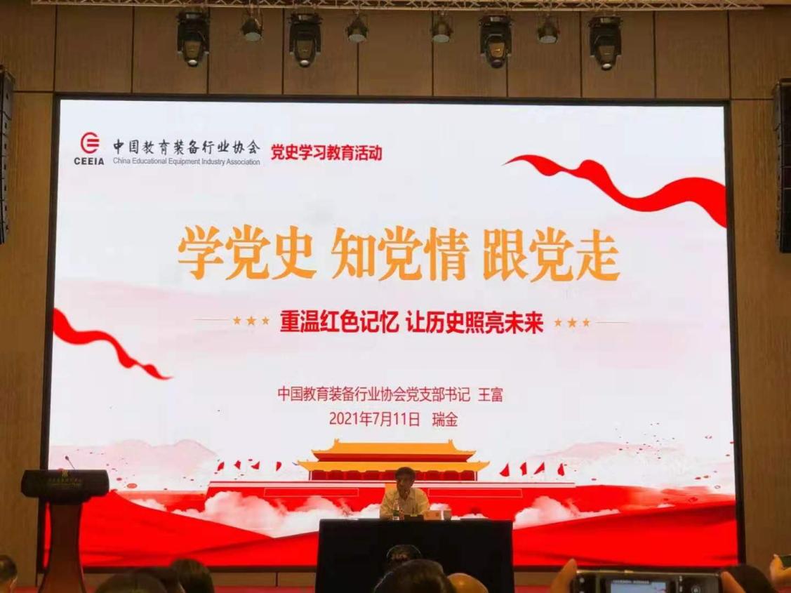 中央和國家機關工委行業協會商會黨建工作部專家以“全面加強黨建工作 為協會持續健康發展提供堅強保證”為題作專題報告,重點介紹了黨建工作在協會建設和發展中的重要作用,指出要全面加強黨建工作,規范行業管理,堅持以黨的領導作為開展各項業務工作的基石,為行業持續健康發展提供堅強保障。“光榮在黨50年”紀念章獲得者、協會黨支部書記王富以“學黨史 知黨情 跟黨走——重溫紅色記憶 讓歷史照亮未來”為題講專題黨課,他以自己50多年黨齡的親身經歷,用“信”“誠”“公”“廉”“勤”五個字勉勵全體黨員要弘揚共產黨的擔當精神,一步一個腳印,踏踏實實做好本職工作,為教育裝備行業高質量發展作出更大的貢獻。中共瑞金市委黨校高級講師以“學習蘇區精神 牢記初心使命”為題作專題講座,介紹了紅都瑞金作為中華蘇維埃共和國臨時中央政府誕生地的歷史,生動闡述了革命先驅的大無畏革命精神。