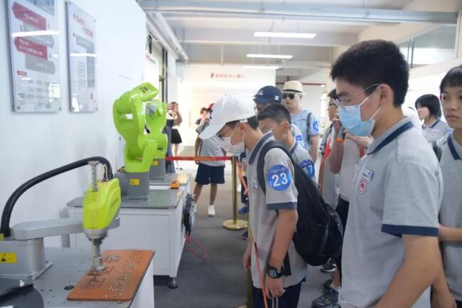 本次活動(dòng)終點(diǎn)站,同學(xué)們深入立達(dá)信漳州長(zhǎng)泰制造基地。走進(jìn)立達(dá)信的制造基地,同學(xué)們一下子就被自動(dòng)化生產(chǎn)線上的機(jī)器人吸引了眼球——上百條生產(chǎn)線上的機(jī)器人,正有條不紊地完成燈具制造的每一個(gè)環(huán)節(jié)。