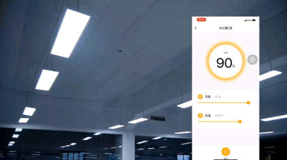 如到午休時間,燈光從早上工作的5700K的白光色溫,100%亮度狀態,隨著漸變10分鐘內進入完全關閉狀態;當午休后上班,柔和燈光將以1%的亮度緩慢開啟,待員工的視覺適應后,燈光在2分鐘內自動漸變調節至100%亮度,智能燈光過渡,呵護員工的明眸。