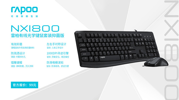 觸享潔凈 雷柏NX1800有線光學(xué)鍵鼠套裝抑菌版上市