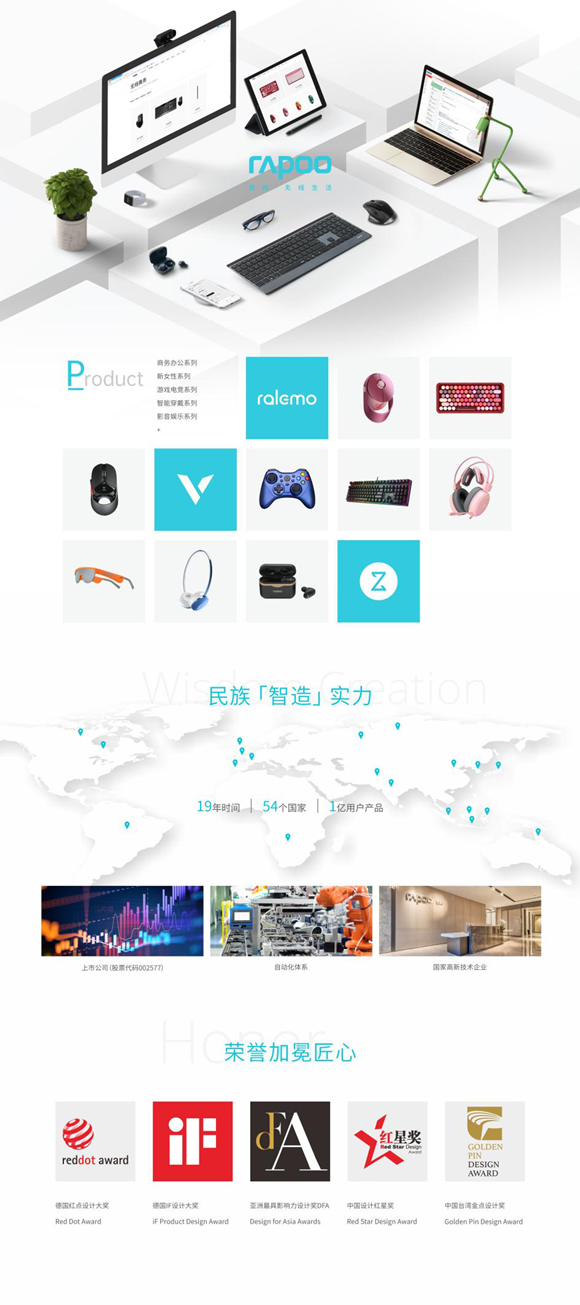 Rapoo雷柏,成立于2002年,外設行業(yè)上市公司,國家級高新技術(shù)企業(yè),首批國家智能制造試點示范企業(yè)。