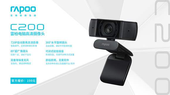 近日,領軍國產外設品牌,實力大廠上市企業Rapoo雷柏,推出了C200電腦高清攝像頭,720P的自動對焦高清影像,89°的超廣角鏡頭,雙重的降噪麥克風,360°水平旋轉的鏡頭等,為你開啟直播的互動熱潮。