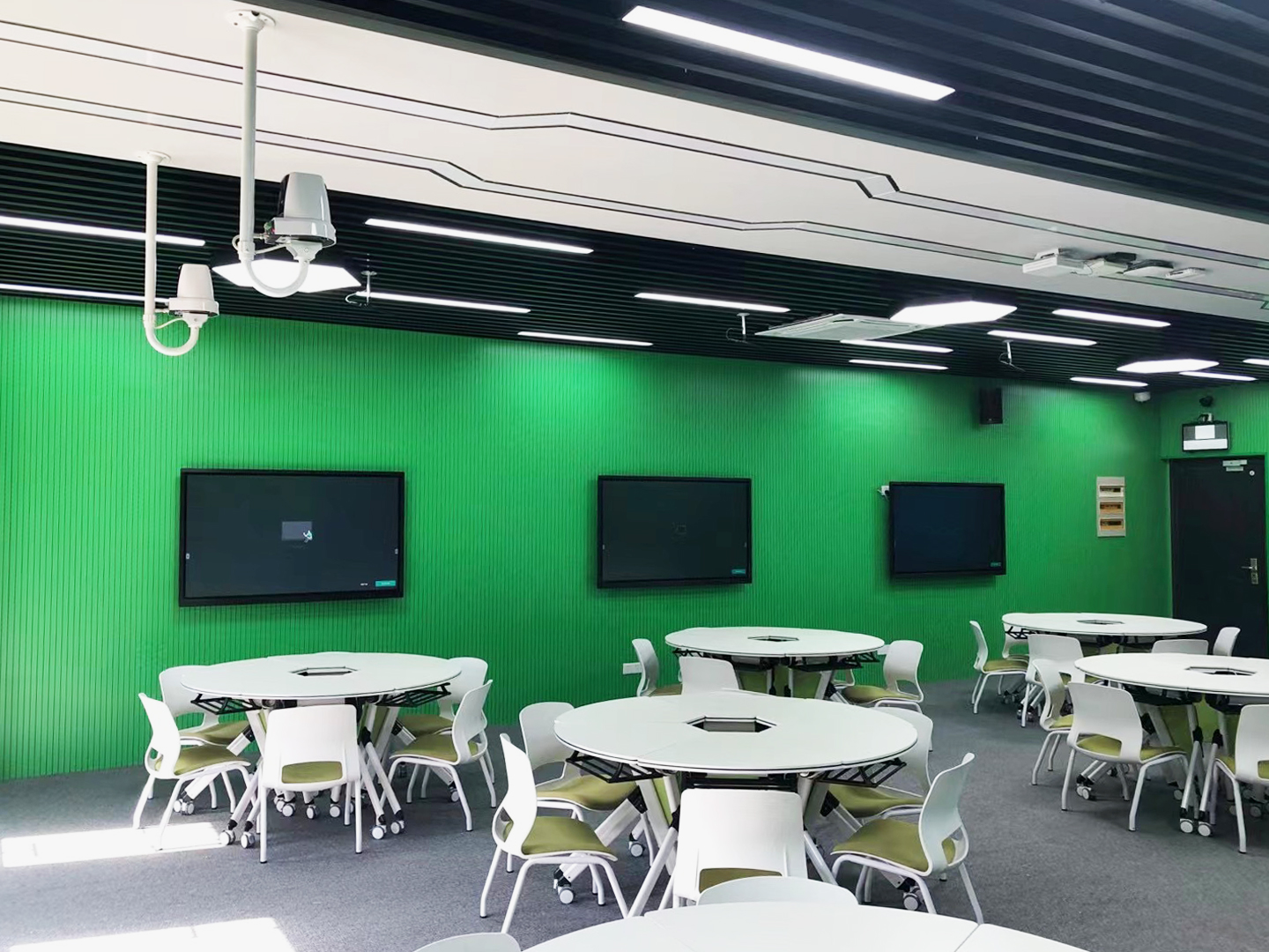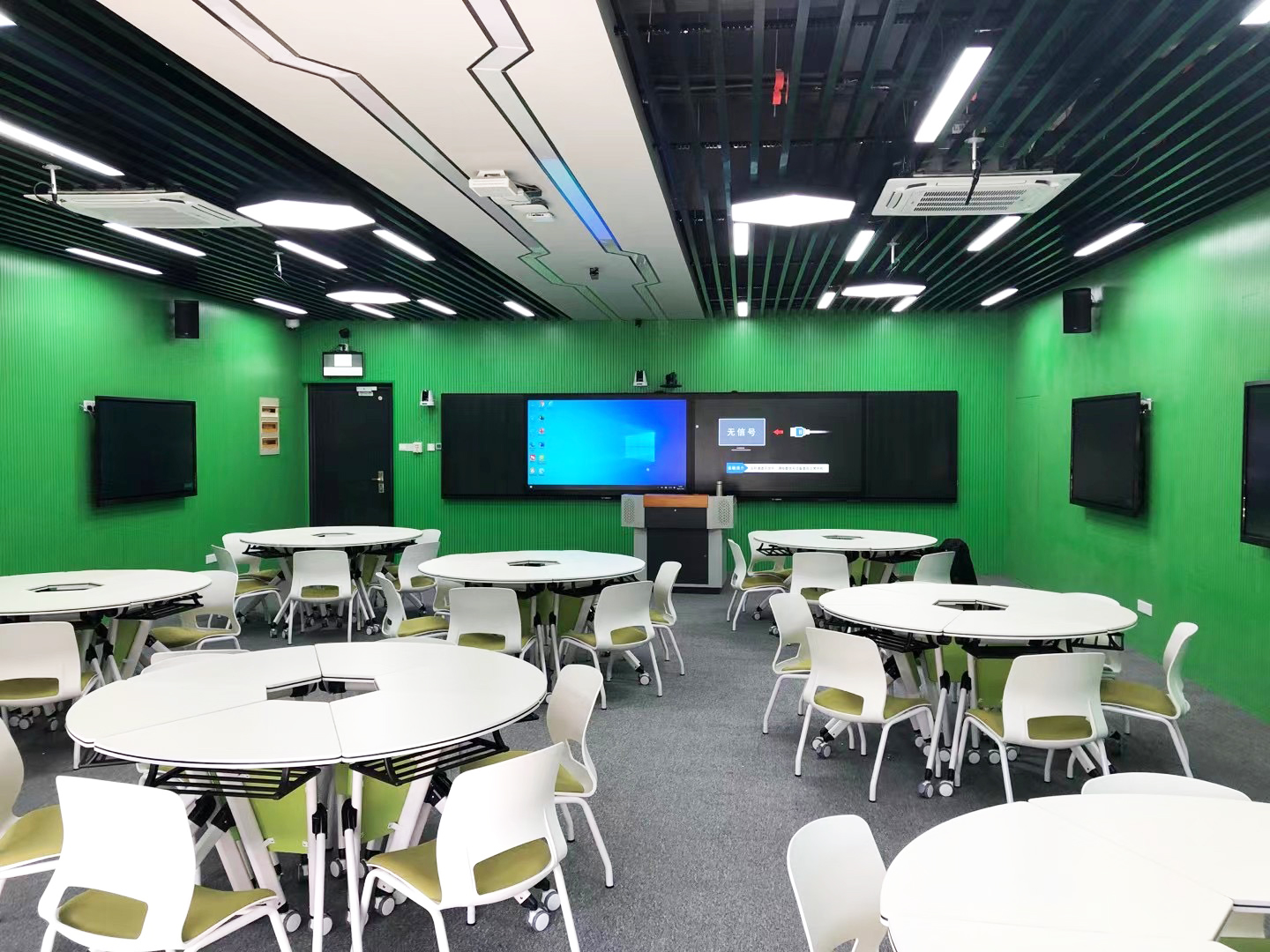 在場景上覆蓋研討教學(xué)、實訓(xùn)教學(xué)、教師發(fā)展培訓(xùn)等,在教學(xué)模式上支持小班教學(xué)、項目制教學(xué)、情景教學(xué)等,讓人與設(shè)備、資源、環(huán)境之間達成高效互動,為創(chuàng)新人才培養(yǎng)提供支持。