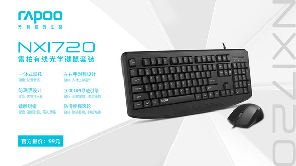 舒適手感 雷柏NX1720有線光學鍵鼠套裝上市