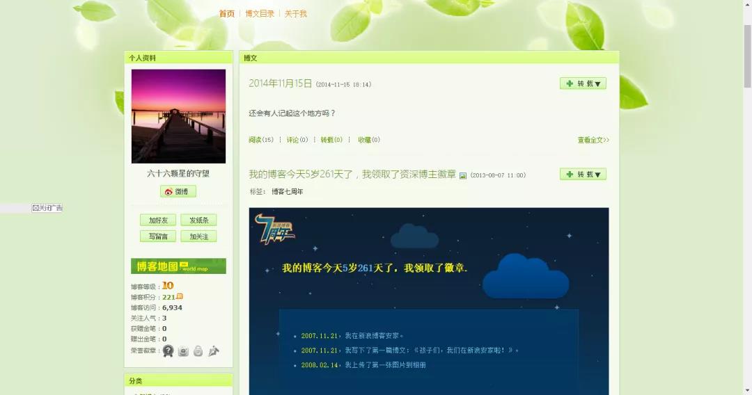 你可能無法想象,我們班66個人,很多吧。那時候,新浪博客是互聯網的新生事物,語文老師為全班同學注冊了一個博客,叫做“六十六顆星的守望”,是不是有點《麥田守望者》的意思。我們班上每個同學都有賬號,大家在博客上練習寫作,書寫心情。現在應該還可以在網上搜到……果然還在,大概除了語文老師,可能就是我寫的最多了。