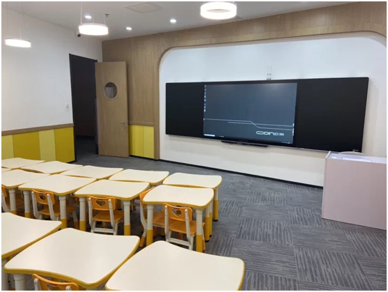 電子黑板將傳統的手寫黑板和多媒體設備相結合,整個黑板由一塊或多塊主屏和書寫板相互緊密拼接而成。書寫板部分沿用了傳統黑板的設計樣式,最大程度地適應老師的教學和板書習慣。