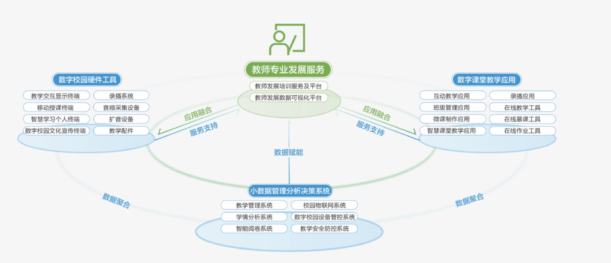 作為教育信息化應用工具及服務提供商,希沃始終堅持以“用戶為核心”,為幼教、普教、高職教及教培行業全學段提供數字校園硬件工具與數字課堂教學應用。希沃圍繞教師、教室與教學展開產品研發,力求為教師教學提供高質量的數字化環境,其中數字環境支持設備,采集師生個體、校園事件及學校環境等數據,為教師和管理者提供更方便、可靠的信息 與數據傳遞窗口,實現信息化教與學應用更全面的覆蓋。此外所有工具應用均基于統一賬號體系,底層數據聯接共通。通過教學小數據的靜默采集與可視化呈現,輔助教學管理決策,反哺教學優化,指導教師專業發展。
