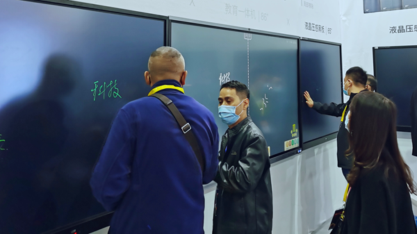 多地教育專家和人士光臨好易寫展臺,體驗聽取方案講解,詳細了解廣東、山東、河北、貴州、湖南等地的液晶壓感黑板項目建設情況,交流共建共享可行性,探討為服務智慧教育一起努力。