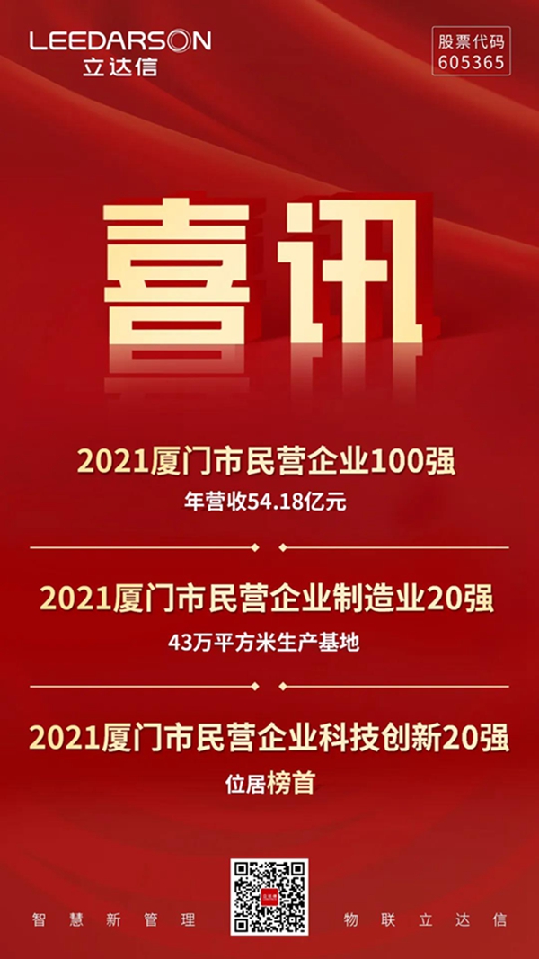 重磅首發(fā) | 立達信上榜2021廈門市“民營企業(yè)100強”、“制造業(yè)20強”、“科技創(chuàng)新20強”!