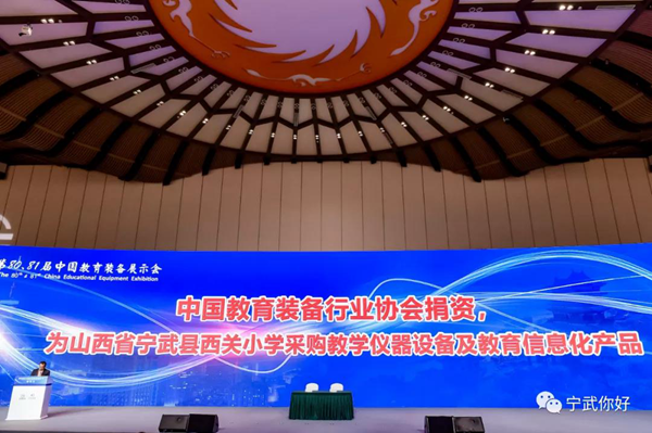 10月22日,在第80屆中國教育裝備展示會銜接會上,中國教育裝備行業協會與中國教師發展基金會聯合舉辦寧武縣西關小學270萬元公益捐贈簽約儀式。中央和國家機關行業協會商會黨委委員、中央和國家機關工委協會黨建部一級巡視員劉巖,協會黨建部綜合管理處副處長張克強;寧武縣委副書記任紅,縣教育科技局、縣西關小學負責同志參加簽約儀式。