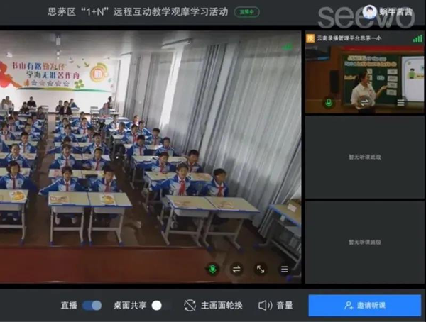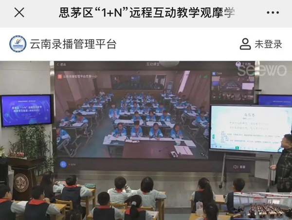 2021年11月16日,一場“城鄉互助,跨省聯動”的遠程互動教學應用試點觀摩學習活動在思茅區第一小學順利開展�;顒右运济﹨^第一小學為主會場,思茅區龍潭中心小學及南京市瑯琊路小學作為分會場,并面向整個普洱市思茅區、丘北縣、蘭州市城關區等其它區開展直播,線上累計觀看達7300多人次。