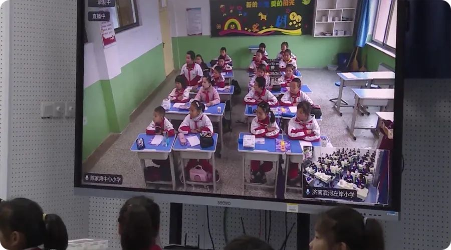 濟南教育電視臺對此次同步課堂活動進行了報道。課堂上,濟南市天橋區濱河左岸小學的教師為兩地學生帶來了《生活中的暖色》美術課,在楊老師的帶領下,學生們各自展示自己的作品,交流互動頻繁,課堂氛圍十分熱烈。