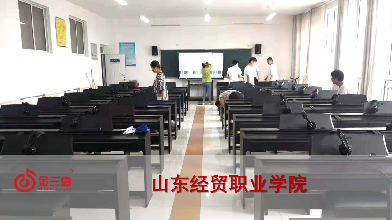 山東經貿職業學院的數字音樂電鋼琴教室正式開始使用,本校電鋼琴教室由北京金三惠科技有限公司負責提供、安裝、培訓。