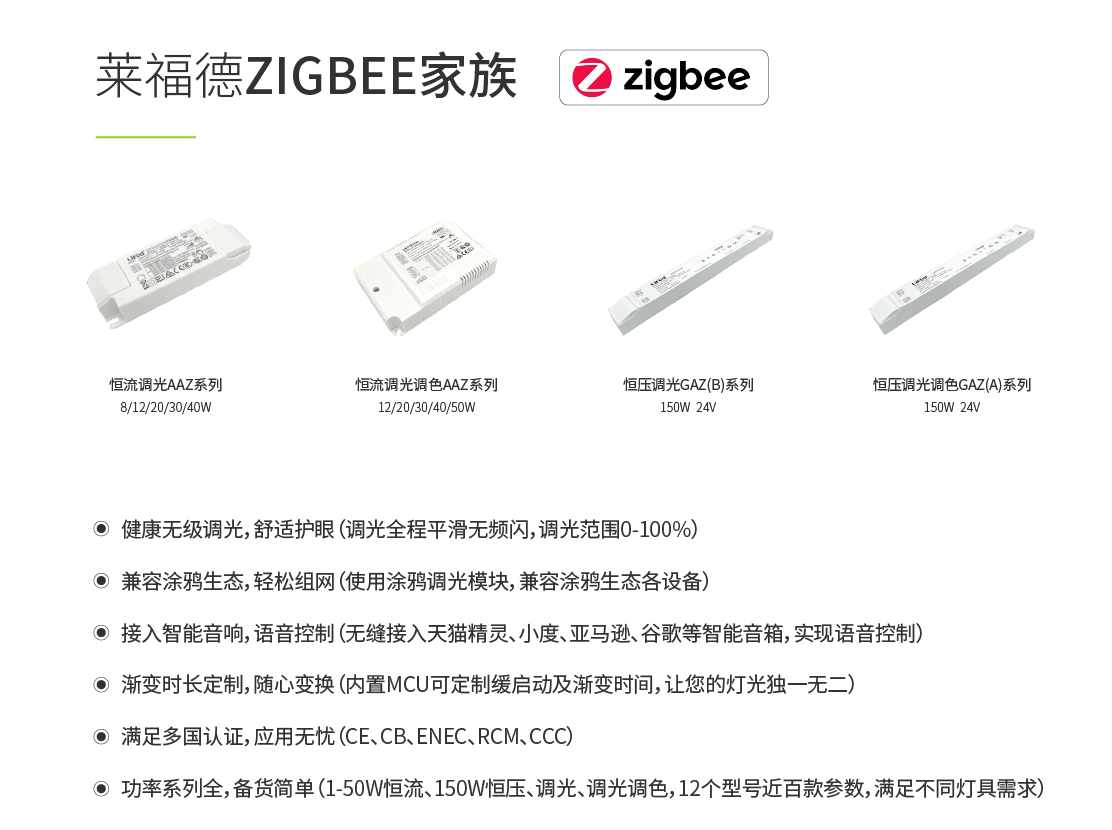 2021年,萊福德智能家族人員大幅擴(kuò)充,產(chǎn)品線已涵蓋PLC、DALI、0-10V、可控規(guī)、Zigbee、藍(lán)牙各種調(diào)光方式,可滿足恒流、恒壓、調(diào)光、調(diào)光調(diào)色、RGB等多種選擇,可為客戶提供一站式采購(gòu)服務(wù)。