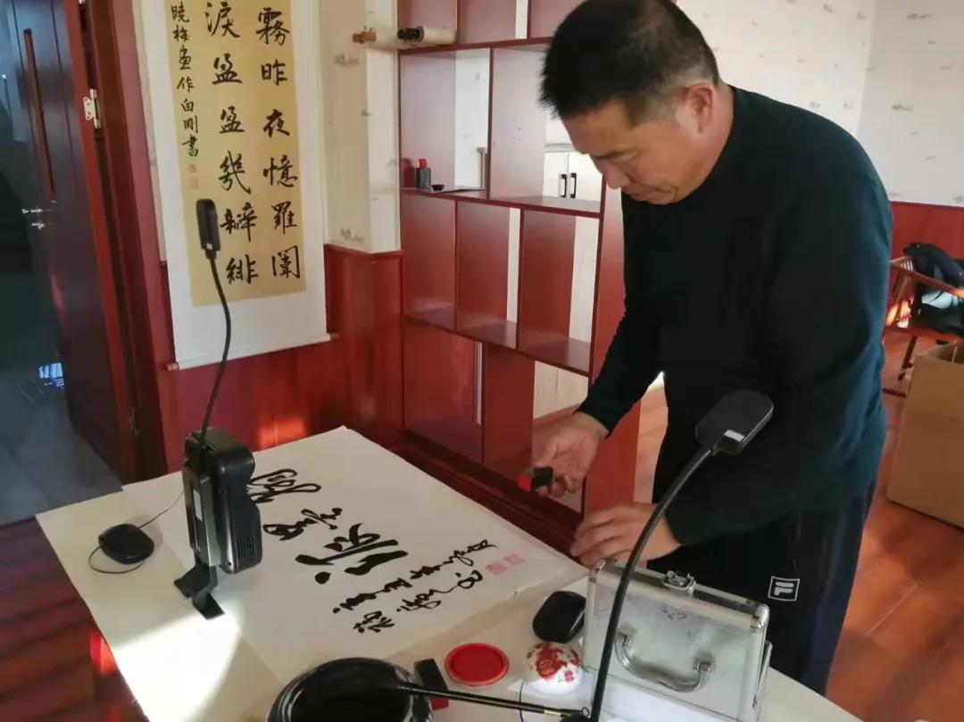 翰墨派數字臨摹學習臺直接成像,圖像高清,字形筆畫更清晰,臨摹效果更佳。學校領導迫不及待的體驗臨摹,并為書法教室題名。